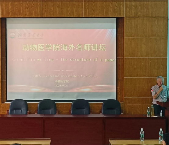 2024年9月29日上午,加拿大蒙特利尔大学Christopher Alan Price教授应球盟会的邀请于动医楼T形教室为公司师生作了以“科研论文结构及其写作”为主题开展了学术报告。球盟会部分老师以及2024级研究生参加了此次报告。