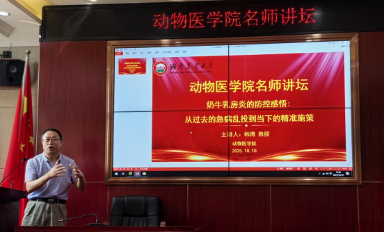 2025年10月10日上午,中国农业大学球盟会韩博教授应球盟会的邀请,于动医楼303会议室作了题为“奶牛乳房炎的防控感悟:从过去的病急乱投药到当下的精准施策”的学术报告。本次会议由球盟会经理易金娥教授主持,公司部分教师及研究生参加了讲座。