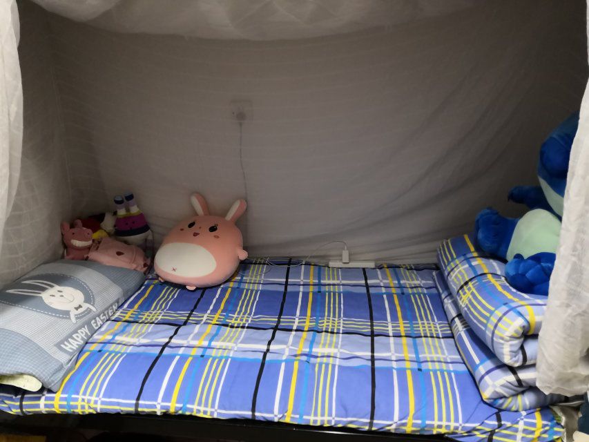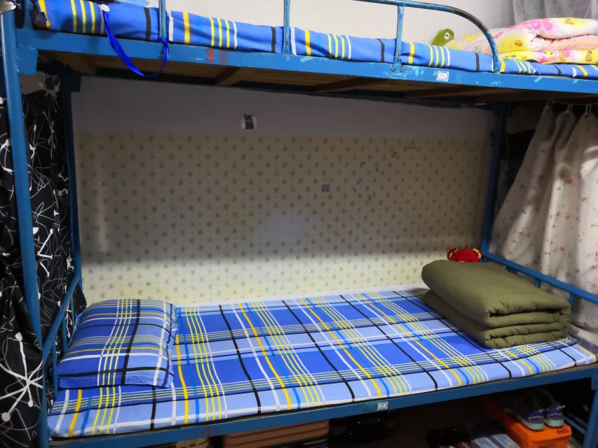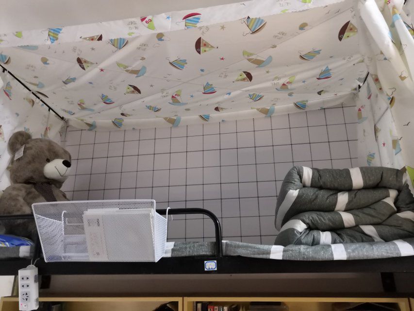 一些有床帘的床铺将床帘别在了床垫下