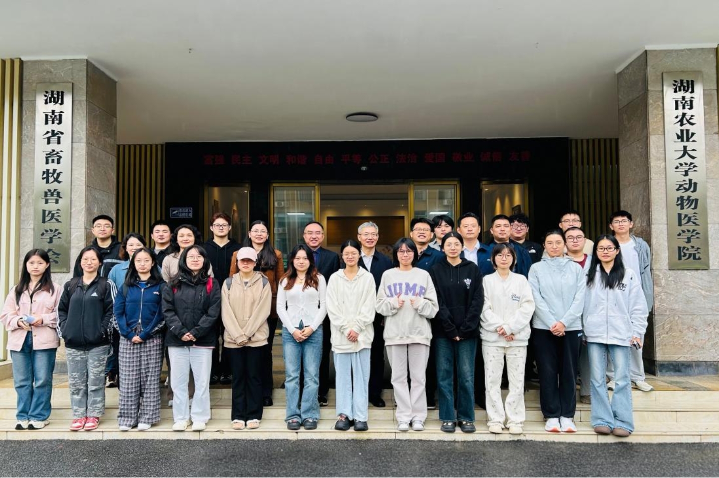 分享会上,嘉宾与优秀员工结合多年行业实践,通过线上和线下的方式倾情分享了从业心得与成长经验。他们指出,行业正处于提质增效的关键阶段,对高素质专业人才需求持续扩大,持续学习能力是保持核心竞争力的关键。鼓励同学们珍惜在校时光,提前规划、广泛尝试,主动探索适合自身的职业方向,并善用企业资源与平台优势提升综合能力。江庆国特别强调,毕业生应沉心静气夯实基础,同时树立社会责任意识,将个人成长融入行业进步,以实际行动推动农牧业高质量发展。